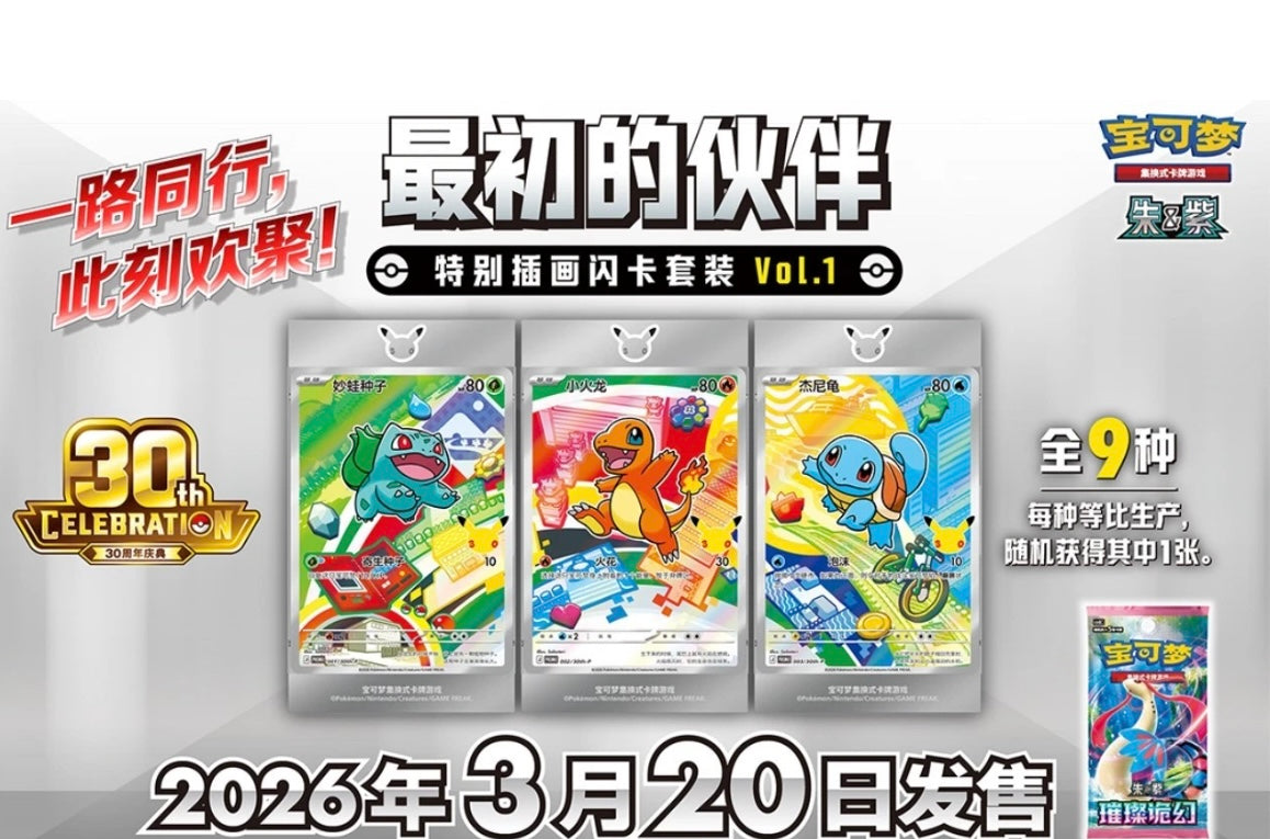 Pokémon S-Chinese 30th Anniv First Partner Holo Card Set Vol.1 Sealed PRE-ORDER